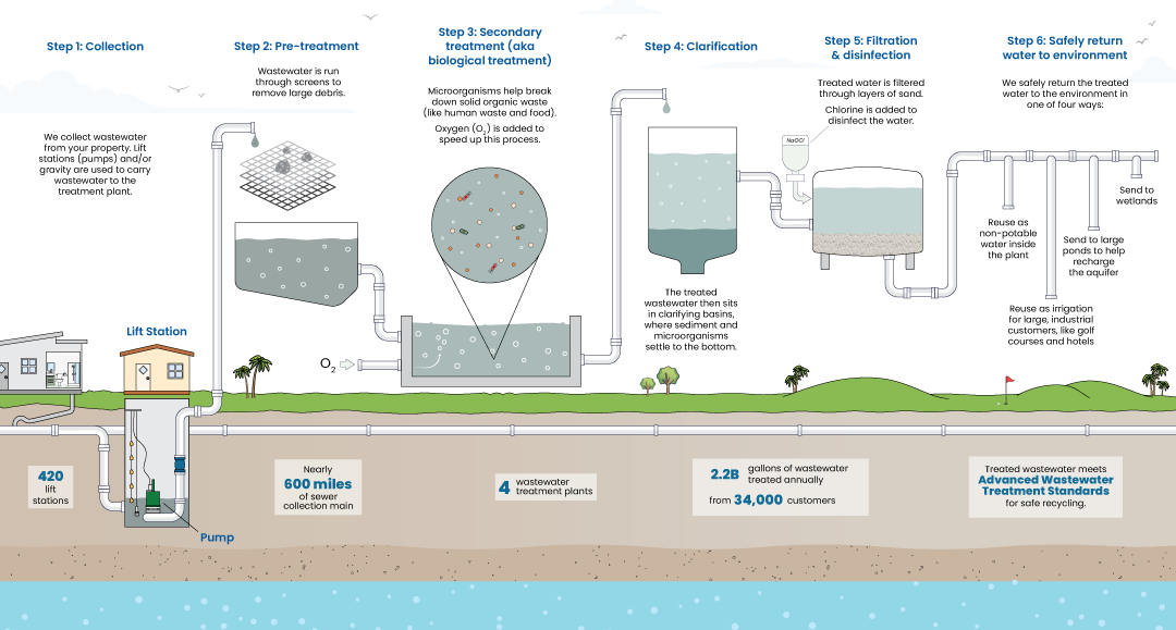 Every day, IRCDUS treats 12 million gallons of wastewater through four treatment plants to serve 34,000 active accounts connected to our wastewater system. Here’s how we do it.